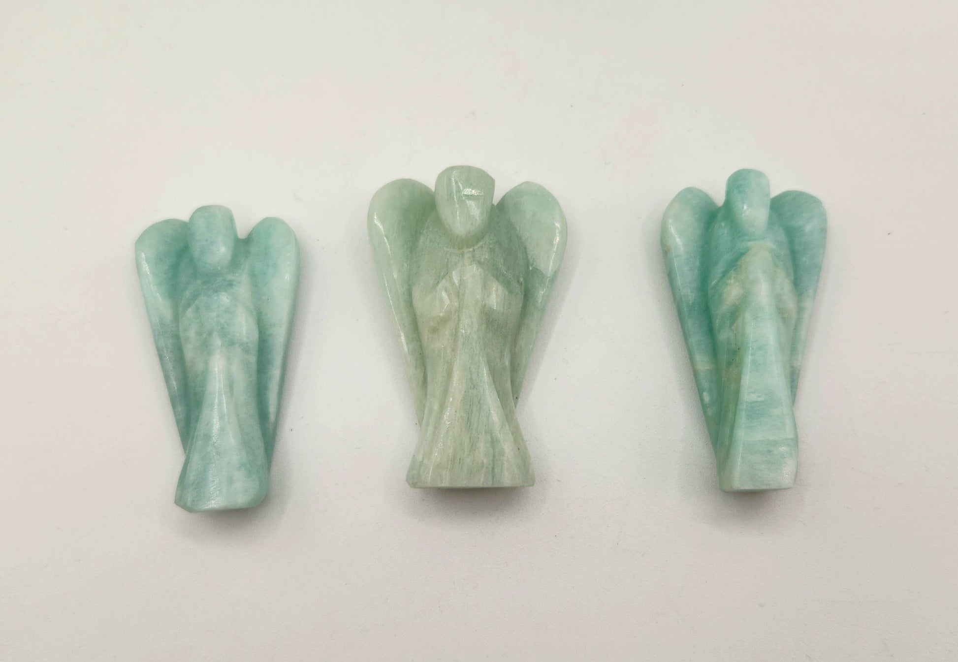 Amazonite Hand Carved Gemstone Angel Figurine 2" Tall