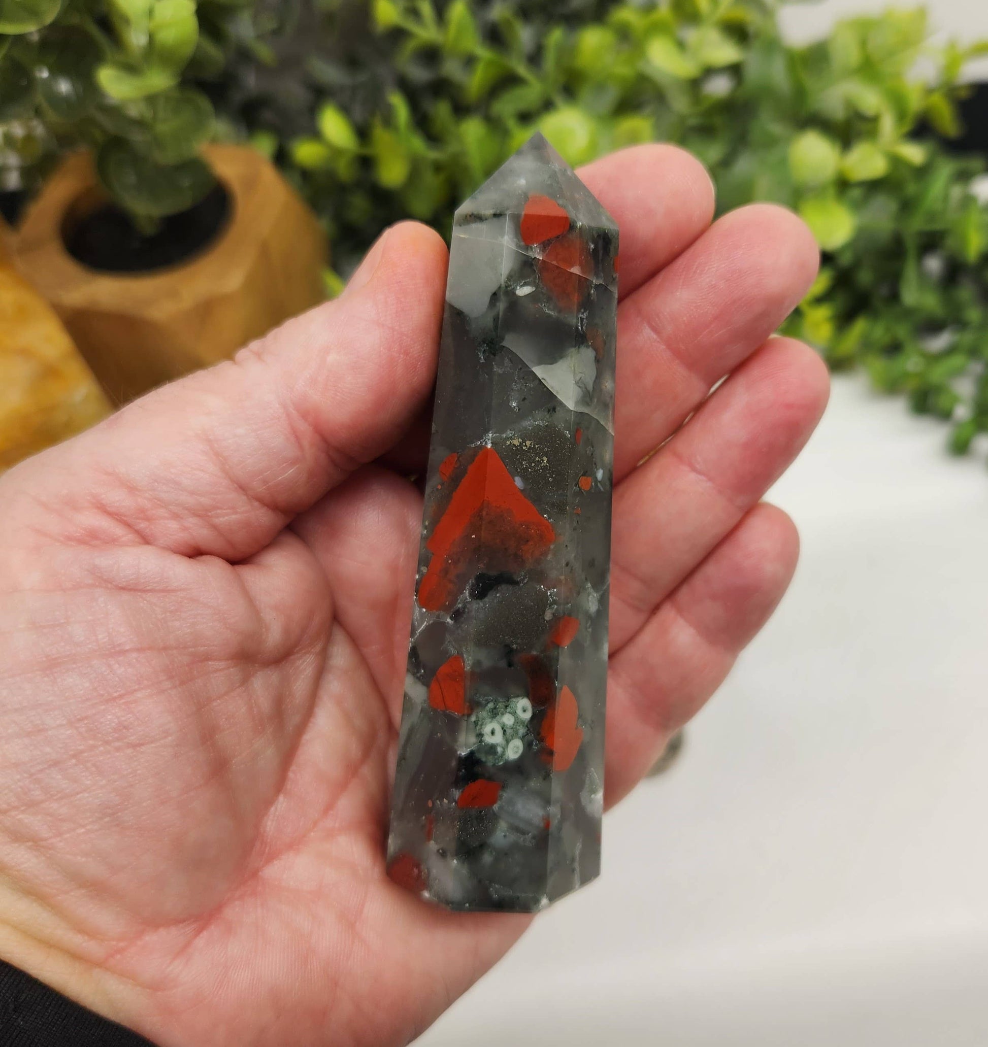 Bloodstone 8-Faceted Tower (Approx. 3.5-3.75"/8.9-9.5cm)